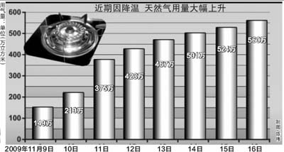 从数据来看,11月16日的用气量达到高峰值560万立方米,比起下雪前9日的用气量,增加了2.76倍。从11月9日至16日该公司累计用户购气量达到3210万立方米,比去年同期增加71.1%。