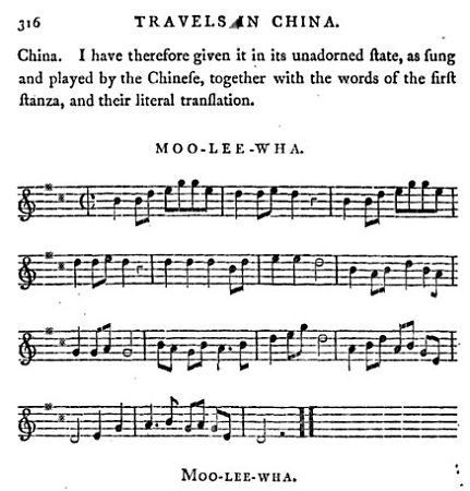 英国人约翰·巴罗(John Barrow)最早为《茉莉花》用五线谱记谱。