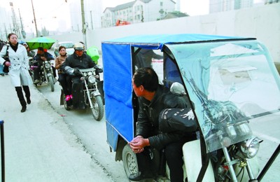 转到车站的另一边,正巧遇上警察整治三轮车,执法人员说,最近一段时间,他们基本上每天都会过来检查,不定期不定时,在这种严打下,共富新村站的黑车、三轮车等要少一点,但他们一走,非法营运的车辆还会回来。