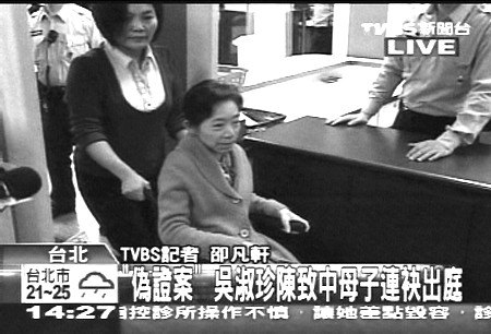 吴淑珍在家人的陪同下出庭。 (电视截图)