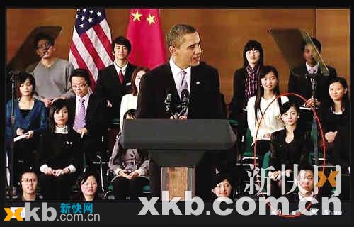 11月16日,奥巴马在上海科技馆发表演讲并与中国青年对话。在演讲现场,摄影记者似乎对一名女子特别感兴趣,这位美女在现场的一举一动都被拍了下来。近日,这位美女脱掉红色外套穿着黑衣坐在奥巴马背后听演讲的全过程被制作成了GIF动画上传网络,被各大论坛广泛转载。随后,又有网友将奥巴马演讲视频中有关该女子的片段截图上传。