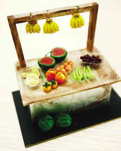 水果摊、面包店、点心车、小餐桌、车仔档都是严格按照1∶12的比例来做的。