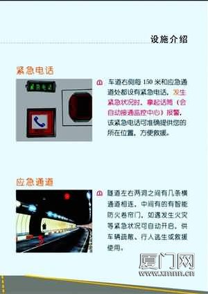 行驶在隧道,抬头看看情报板,就可以了解到交通通行、管制等信息;红绿两色的车道指示器,标示出车道是否可以通行;右侧车道每隔150米和应急通道处,都有紧急电话,不用拨号就能接通监控中心,方便报警救援。