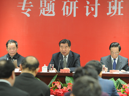 4月9日,中共中央政治局委员、国务院副总理回良玉在北京出席省部级领导干部宗教工作专题研讨班开班仪式并讲话。新华社记者 丁林 摄