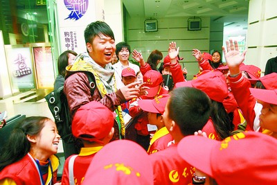 校园记者采访主持人杜海涛。
