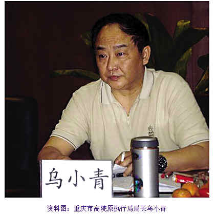 现年57岁的乌小青,被捕前系重庆市高级人民法院法官进修学院院长、重庆市高级人民法院审判委员会委员(副厅级),因涉嫌收受贿赂和巨额财产来源不明,于2009年6月9日被检察机关以涉嫌受贿罪立案侦查,被逮捕后羁押在市第二看守所。11月1日,该案进入审查起诉程序。
