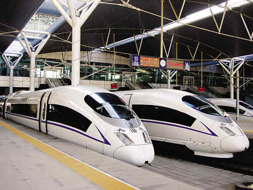 CRH3型:2008年4月11日,首列国产时速350公里CRH3“和谐号”动车组下线,标志着中国铁路技术装备现代化取得又一重大成果,我国由此成为世界上仅有的几个能制造时速350公里高速铁路移动装备的国家之一。