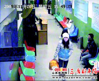 这是11月20日西安交通大学第一附属医院监控录像拍摄的犯罪嫌疑人“偷婴”前的截图。