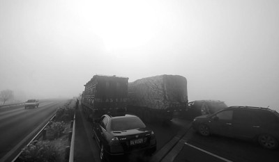 12月1日,在太原到长治的高速公路上,大雾导致车辆拥堵 新华社发