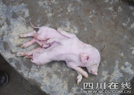 3只耳8条腿连体猪儿降生便夭折