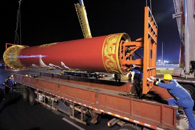 昨夜至今日凌晨,56根民族团结柱撤离天安门广场。北京市政府决定将它们迁移回厂,进行妥善维护后再择地安放。 新华社发