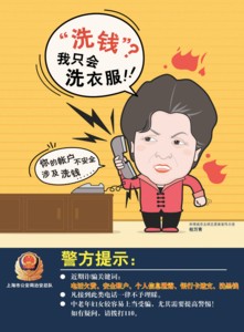 为吸引中老年人提防此类诈骗,市公安局治安总队携手“新老娘舅”柏万青,推出了新版的防范宣传卡通漫画海报。漫画中,柏阿姨接到了一个电话说:“你的账户不安全,涉及洗钱……”快人快语的柏阿姨当即回敬道:“洗钱?我只会洗衣服。”海报下端,警方提示称,凡是接到的电话中包含“电话欠费、安全账户、个人信息泄露、银行卡透支、洗黑钱”等关键词,一律不要理睬,如有疑问,请拨打110。