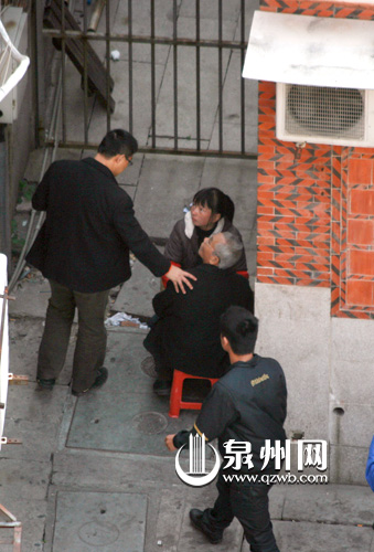 随后,“擦鞋女”便带起擦鞋的盒子和板凳带着老人向一旁的小巷中走去。