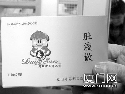 本报讯(文/图 许云芬 高树灼)近日,有市民打本报热线电话5589999向本报询问,孩子消化功能不好,以前厦门思明区医院(现为厦门第一医院思明分院)有一种叫肚液散的老中药,专治胃口不好的,很多老厦门人都知道。可是现在到医院门诊买,却说没有了,不知道是否已经停产了。