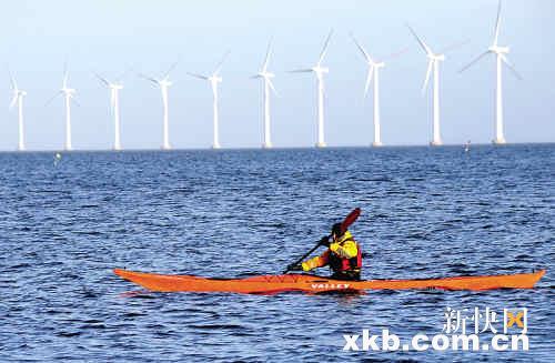 在哥本哈根港口的入口处,20座白色风力发电机伫立在大海上,巨大的风轮不停地旋转,在碧海蓝天的衬托下格外醒目。丹麦不仅是风能技术诞生地,而且在风力能源利用方面一直处于世界领先地位。目前,风力发电已占全国电力供应的19%。在举办此次大会的贝拉会展中心前,也架起了一座高大的风力发电机,从很远处就能看到巨大的白色叶片在不停地旋转,成为贝拉会议中心的标志。