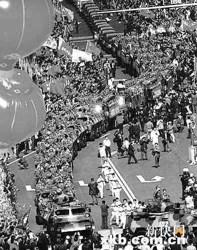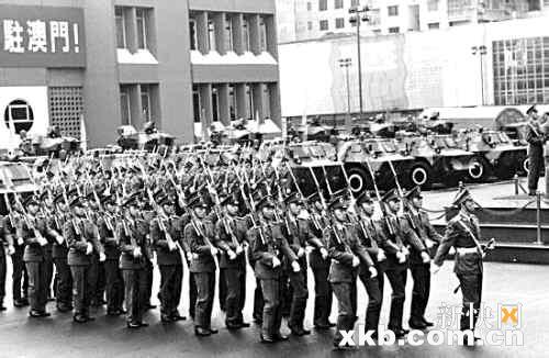 驻澳门的解放军500人部队在20万珠海各界人士组成的队伍热烈欢送下,在正午12时通过珠海拱北海关,进入澳门,受到两万多澳门居民的夹道欢迎。这是100多年来第一支中国政府派遣进驻澳门的军队。