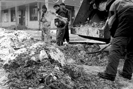 鞭炮残存的纸屑被积雪洇湿,更加难以清扫