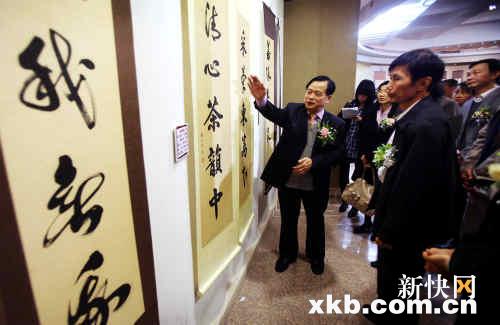 新快报讯(记者 尹来 通讯员 龙国华)昨天上午,“黄永光罗易书法联展”在广州艺术博物院举行(见图,夏世焱/摄)。广东广雅中学校长、特级教师黄永光表示,书法是国学,推进书法教学也是弘扬国学的盛事。广东实验中学特级教师罗易更是表示,学生学好书法,在高考时可以获得“实惠”——字写得靓,总体成绩可提高十几分。