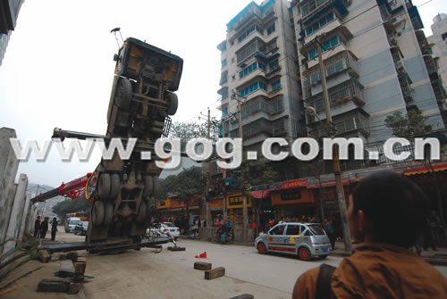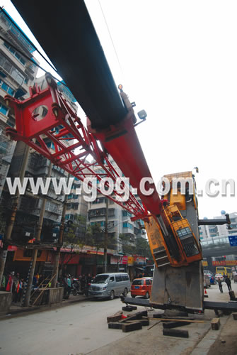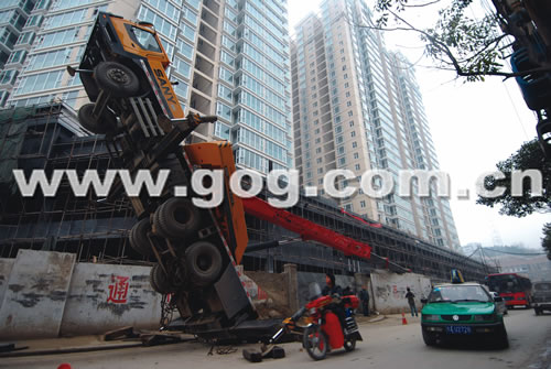 据工地上的工人介绍,事情发生在凌晨4时许,当时正在拆除几十米长的塔吊支臂。吊车将塔吊支臂吊离主塔后,在离地只有几米高时,吊车车头突然离地,并很快尾部着地,“站立”起来。