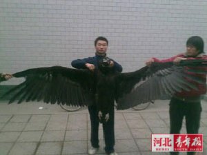 本报讯(记者徐辉)昨日,本报对无极县一巨鸟飞行中突然坠亡,尸体不知去向的事情进行了报道。无极县居民贾天阔昨日来电表示,大鸟的尸体在他家的院子里,原本想进行无公害化处理,但因事未果。他在网上查了一些鸟的图片,觉得这只大鸟的样子与草原雕很像,为国家二级保护鸟类。