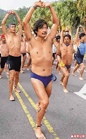 民进党“立委”蔡同荣自觉身材不错,想和金溥聪一比高下。 来源:台湾“今日新闻网”