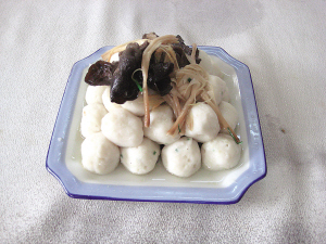 据黄宝庆介绍,罗汉三鲜是指鱼丸、肉丸、肉糕(肉丸分炸肉丸子和汆汤丸子两种,肉糕亦分瘦肉糕和肥肉糕两种),在蒸笼和油锅里做好后,用高汤烩煮并放点木耳、黄花、菠菜、蘑菇、葱花点缀便可上桌。黄宝庆的“宝庆楼三鲜店”专卖没经过烩煮的鱼丸、肉丸、肉糕。