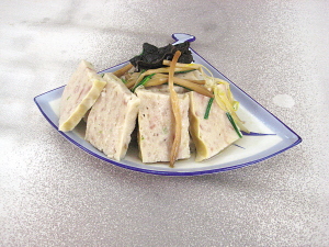 吃肉糕的感觉可称得上奇特:肉糕鲜嫩滑爽入口即化,但它的鲜味并不跟随肉糕入喉下肚,而是留在口腔,撞击着味蕾。一般人认为鱼丸最难做,其实,真正难做的是肉糕。一是肉糕的主料、辅料、调料的配比和料子的打制很重要,二是蒸肉糕的火候非常关键,时间既不能长也不能短。