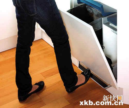 厨房里的小灶台可以隐藏大乾坤!在做烹饪前的准备工作时,只需脚下一动,灶台下就会弹出一个秘密天地,里面不仅有一个40升容积的有盖垃圾桶,还有放置厨房工具的储物空间。隐形垃圾桶不仅为狭小的厨房省出了更多空间,还有助于保持环境的洁净。