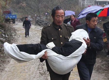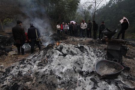 安化县重大纵火杀人案发生后,遇难者准备装殓。