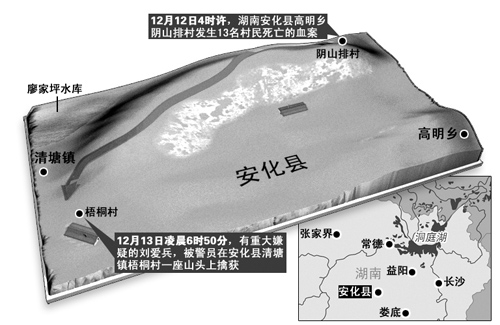 ■湖南省安化县特大凶杀案嫌犯在案发26小时后落网■死者均为嫌犯近亲,年龄最小6岁■警方称嫌犯有精神病史,当地村民反映他接人待物正常