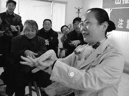 科学洗手是阻断甲流病毒传播的途径之一。“指尖、指缝、大拇指是居民洗手过程中容易忽略的区域。”在活动现场,张秀平教授居民科学的洗手方法。她说,先洗手心、手背,再洗手指缝,然后手指合拢清洗手指指背,再清洗左、右大拇指,随后清洗指尖,最后清洗手腕。