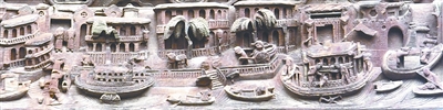 “三镇江景”木雕中的租界部分可见外国建筑的异域风情。 谭刚毅供图