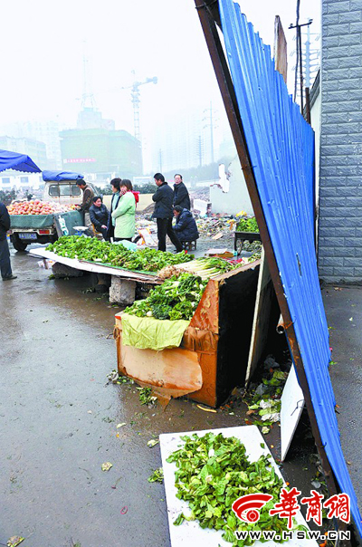 本报讯(记者 张小刚)昨日上午,天空还飘着零星雪花,小石站在菜摊子后面冻得直想将脸缩进大衣里,在他身后是已被拆成一堆废墟的金光门市场。