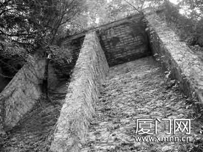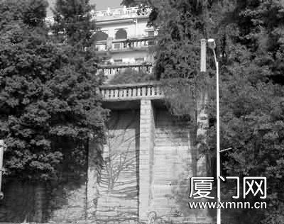 ▲1929年前后,厦门进行大规模城市建设,这堵肋型挡路墙将“天启石”包裹起来,开发建设虎头山新区景观。白毅 摄