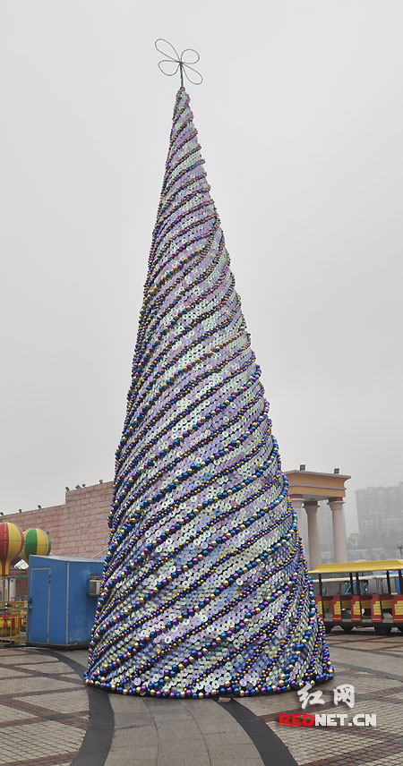 长沙世界之窗打造的18米高圣诞树。红网长沙12月16日讯(记者 张勇 通讯员 陈曦)圣诞节年年有,如何才算过一个有创意的圣诞?长沙世界之窗在今年推出的“圣诞夜,让我们成为传说”主题系列活动也许能让您眼前一亮:由2010名游客聚集在一起举起火把排列出最震撼的圣诞树造型——世界上最大的人体圣诞树就将在你眼前诞生。
