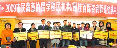 此次荣获“湖南2009市民满意的留学移民机构”的9家机构分别为:北京澳际教育咨询有限公司长沙分公司、广东启德教育服务有限公司长沙分公司、狄邦出国梦国际教育交流中心、湖南省领拓出国事务服务有限公司、尊成国际教育咨询有限公司湖南分公司、湖南新里程咨询管理有限公司、加拿大加成公司长沙分公司、湖南俊汇出国服务有限公司和长沙市国际教育交流服务中心。