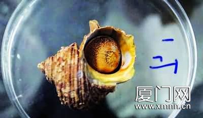昨天下午,在厦门大学海洋与环境学院实验室里,我国著名贝类学家和海洋生物学家李复雪教授一看到记者带来的“螺”就说,这是粒花冠小月螺的厣(读yan,螺类壳口圆片状的盖),并不是什么螺。