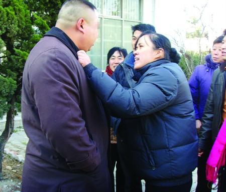 法庭外,激动的受害者们质问刘莉芹的亲属。