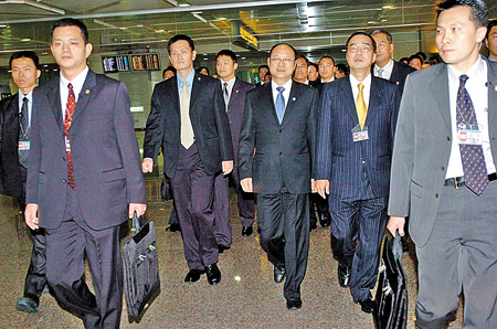 海协会驻会副会长李炳才、执行副会长兼秘书长李亚飞同机抵达。