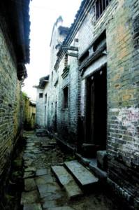沙坊村在历史的洗礼下走过千年,以其自有的自然、人文风貌存于世间。在连州,沙坊村也算是个远近闻名的村落,不是因为千年的历史,而是因为一种产自该村的 “名产”—沙坊粉,一走到沙坊村口,就看到村前的空地上晒着一张张白白的粉皮。进入村内感到格外的安静,一座座古老的门楼里面已少有村民居住,大部分村民已迁到村外另建新房安居。四通八达的小巷上铺满了青石板,上面满是岁月留下的沧桑的印痕,青砖黑瓦的古屋虽已老旧,但还保存完好。