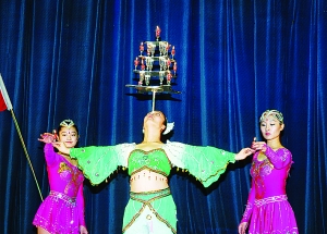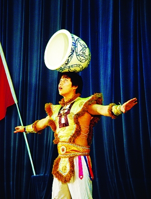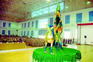 杂技团进军营 内蒙古晨报 2009.12.2021:31 关注 ■表演柔术 ■顶技■呼拉圈表演 ■顶缸 ■踢碗 昨日下午,内蒙古杂技团来到武警森警总队新训支队慰问新兵,《五人柔术》等节目博得了现场官兵的阵阵掌声。 本报记者 周亚军摄影报道
