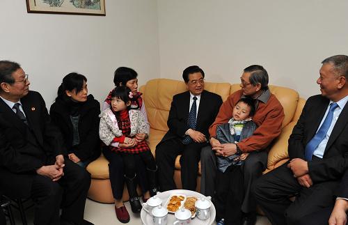 12月19日,国家主席胡锦涛到澳门市民梁植森家中走访。新华社记者李学仁摄