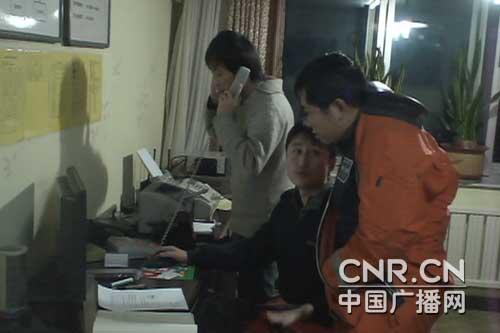 机长许凡(中)、副驾驶李春雨(右)凌晨研究制定救助方案(陈刚 摄)