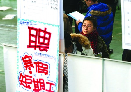 寒假延长,短期工成为不少大学生的选择。 (资料片)本报记者杨宁摄