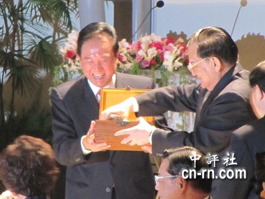 收到大印章礼物的连战相当开心,立即拿出来端详,还举起印章连续腾空盖了两次,一旁的陈云林见状,笑得相当开怀