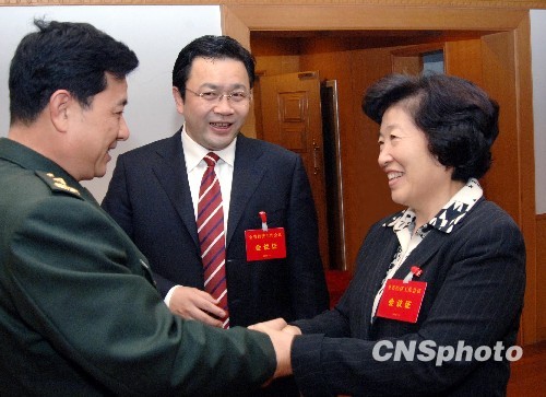 12月25日,履新一个月的中共福建省委书记孙春兰(右)出席福建省经济工作会议时与参会代表握手交谈。孙春兰在会上表示,福建要发挥“五缘”优势,积极承接台湾产业转移。中新社发刘可耕 摄