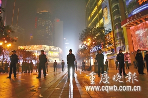 平安夜临时“清场” 解放碑下空荡荡