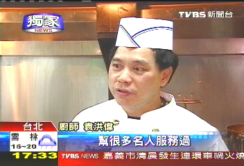 算的上是阿扁“御用厨师”了啦,这名师傅叫作袁伟洪,外号“黑仔”,40年的厨艺经验,里面有7年,都在世贸联谊社,每年都进“官邸”,替“总统”做菜;此外,座上宾还有王永庆、赵少康和其他的政商名流,“鳖汤”更是熟客必点。