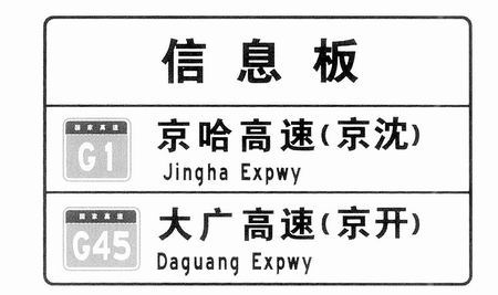 高速公路指示牌是一个连续的标志,在距下站口还有4公里处,会有一个白底黑字的信息板,上面有数字和汉字的对照,如G4代表京港澳高速、G30代表连霍高速。信息板是此次国家标准中新增加的一种路牌,目的就是为了明确道路名称和编号的对应关系。
