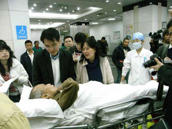 30日傍晚,谢伯在入境处驻粤办的协助下,由内地医院安排救护车,送往文锦渡,再经香港医护人员上车为他检查后,用担架床将他抬上救护车,送往北区医院。
